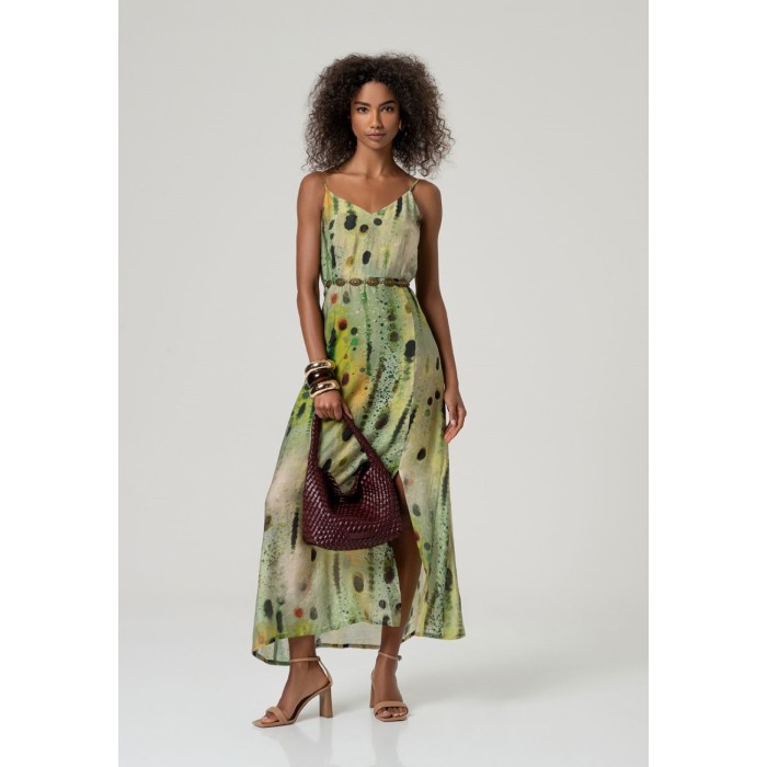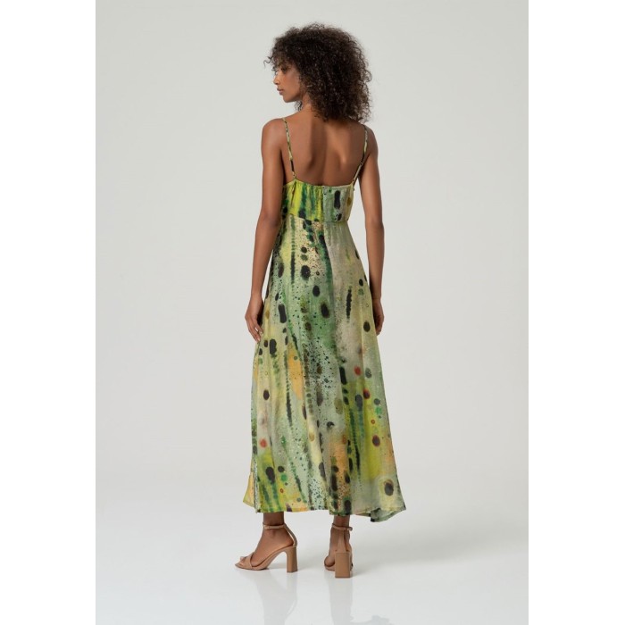 VESTIDO LARGO DE TIRANTE FINO ESTAMPADO VERDE